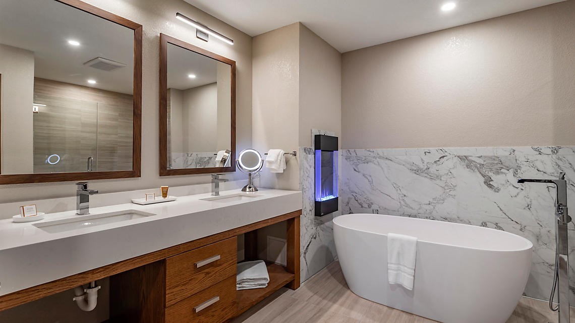 The hot tub and fireplace are the standout features of this suite. Boasting a private entrance, this spacious suite also features 2 separate bedrooms and 2 bathrooms with a bath. In the well-fitted kitchen, guests will find a stovetop, a refrigerator, a dishwasher and kitchenware. This suite has air conditioning, a tea and coffee maker, a TV with cable channels and a patio. The unit has 2 beds.