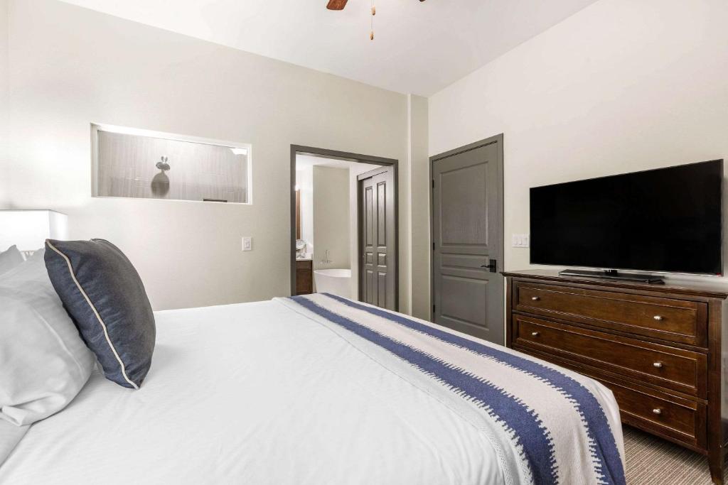 This expansive 2,840 sq ft four-bedroom apartment is perfect for large families or groups seeking space and comfort. The apartment features three king beds and two queen beds, offering generous sleeping accommodations. Designed for relaxation and convenience, the unit includes a cozy fireplace, a spa bath, and a private balcony. A fully equipped kitchen, spacious living and dining areas, and modern entertainment options such as a flat-screen cable TV and DVD player make this apartment ideal for both short and extended stays. Free WiFi and air conditioning add to the overall comfort of the space.