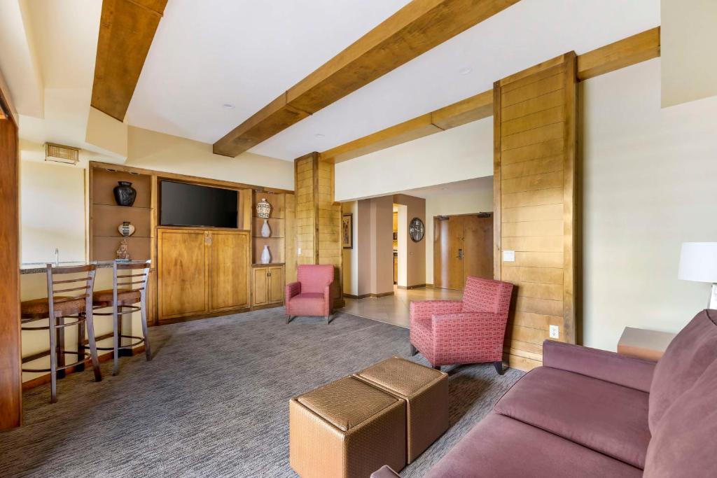 Each 1-Bedroom Suite includes a king-size bed, a TV and a full bathroom with a shower/tub combination. The living room is furnished with a queen-size sleeper sofa, a TV and a separate dining nook. All 1-Bedroom Suites also include a second full bathroom with shower/tub combination. The fully equipped kitchen features a refrigerator, stovetop, oven, microwave, coffee maker, toaster, dishwasher and cooking utensils for in-room dining.