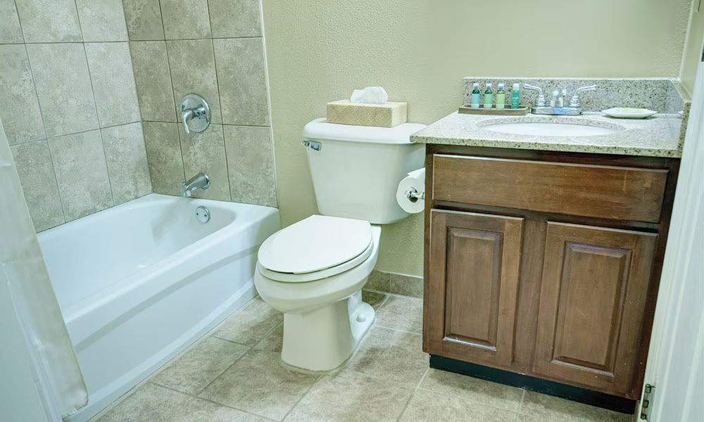 This compact yet comfortable suite offers 516 sq. ft. of well-utilized living space and is ideal for up to four guests. It features a mini kitchen and one bathroom, making it suitable for short stays or convenient extended visits. The sleeping arrangement includes one king bed and a queen sleeper sofa, providing flexibility and comfort. Modern in-unit amenities enhance the overall stay experience, ensuring both relaxation and convenience.