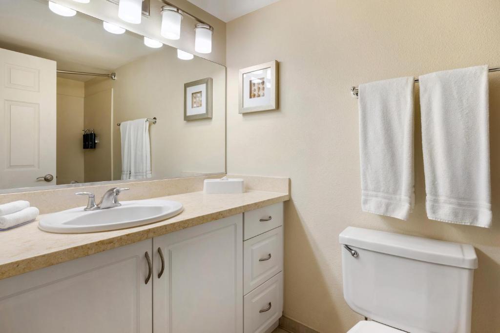 This 2-Bedroom Suite offers a king-size bed and queen-size bed or two twin beds, plus a sofa bed in the living area. There’s also a balcony with a private barbeque grill and a partial kitchenette with a coffee maker, refrigerator, microwave, stovetop and toaster. Additional amenities include a TV and DVD player.