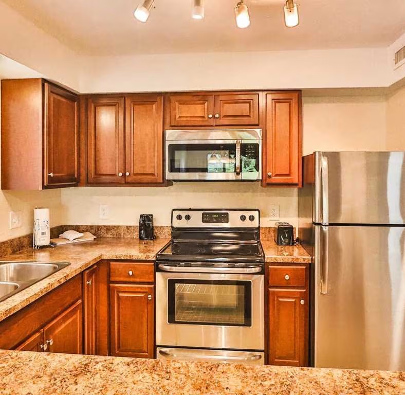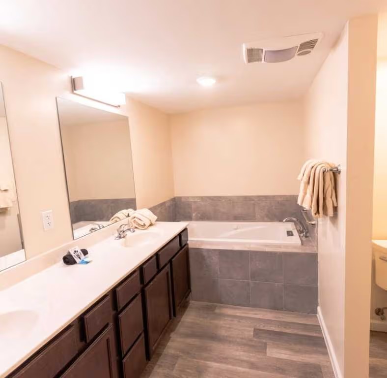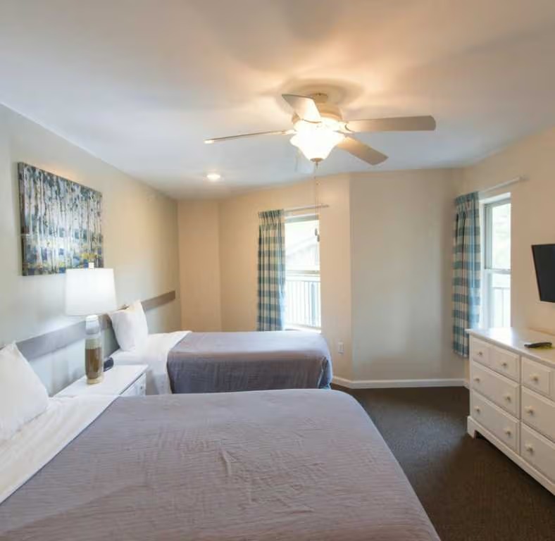 Each suite has a comfortable king-sized bed in the main bedroom and two twin beds in the second bedroom, plus a sleeper sofa in the living area for extra guests. The living room is cozy, and the kitchen comes fully equipped with everything you need to cook. Enjoy the fresh air on the large private balconies, and take a relaxing bath in the jacuzzi tubs. There are flat-screen TVs in every bedroom and the living room for entertainment, and laundry facilities are available for free. All towels, sheets, and linens are provided for a hassle-free stay.