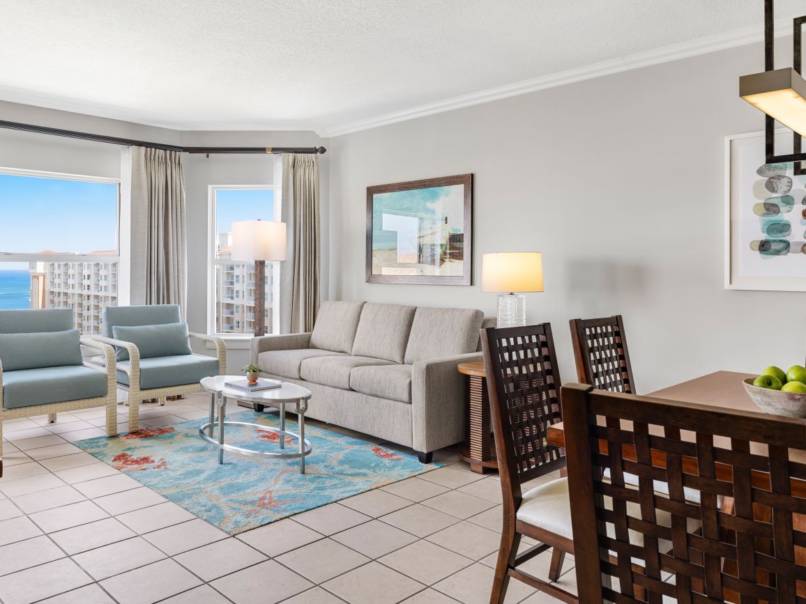 Make yourself magnificently at home in your spacious and beautifully appointed villa. Your beautiful two-bedroom two-bath villa is equipped with a full-size kitchen, washer/dryer, high-speed internet access, and cable service on a large flat-screen television with DVD player.