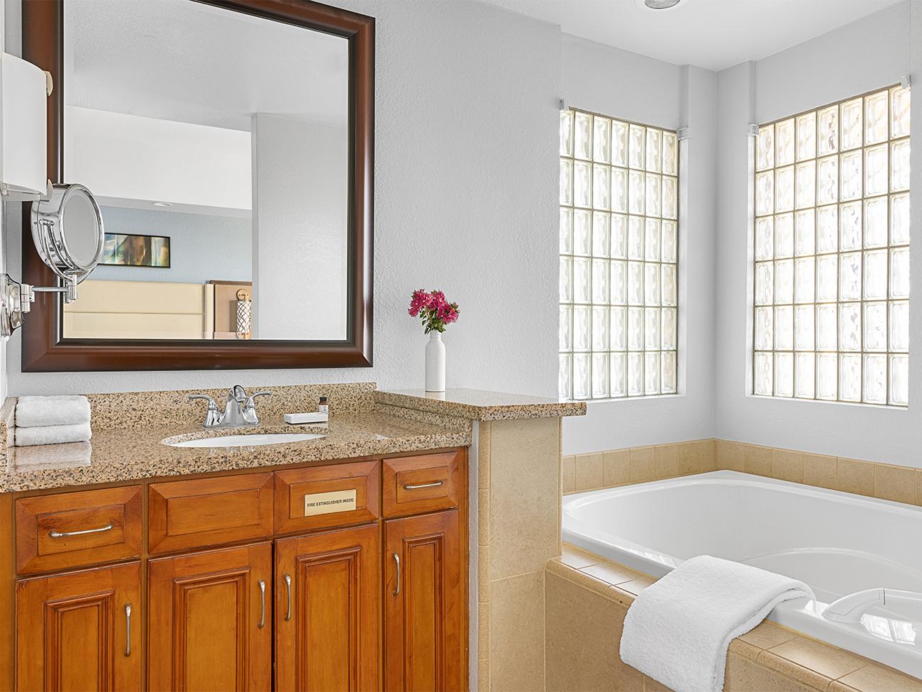 Your place at Marriott’s Desert Springs Villas is an oasis of comfort and calm. Your beautiful guestroom is equipped with a kitchenette, high-speed internet, and cable/satellite service on a large flat-screen television.