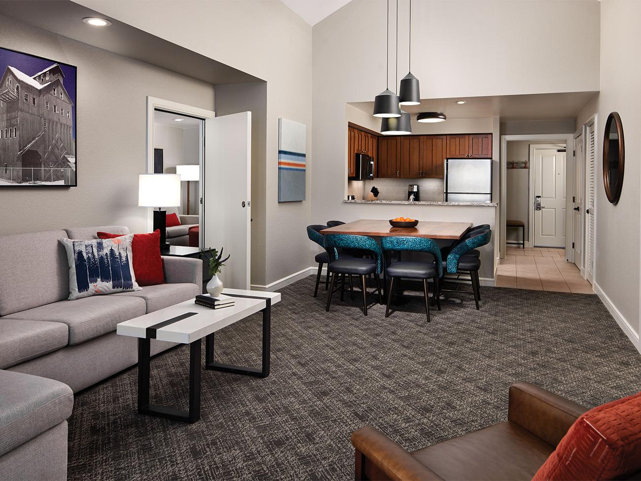 Amazing as the skiing and other activities are here, the accommodations at this resort are just as impressive. Your beautiful two-bedroom two-bath villa is equipped with a full kitchen, washer/dryer, high-speed internet, cable/satellite service on a large flat-screen television with DVD player.