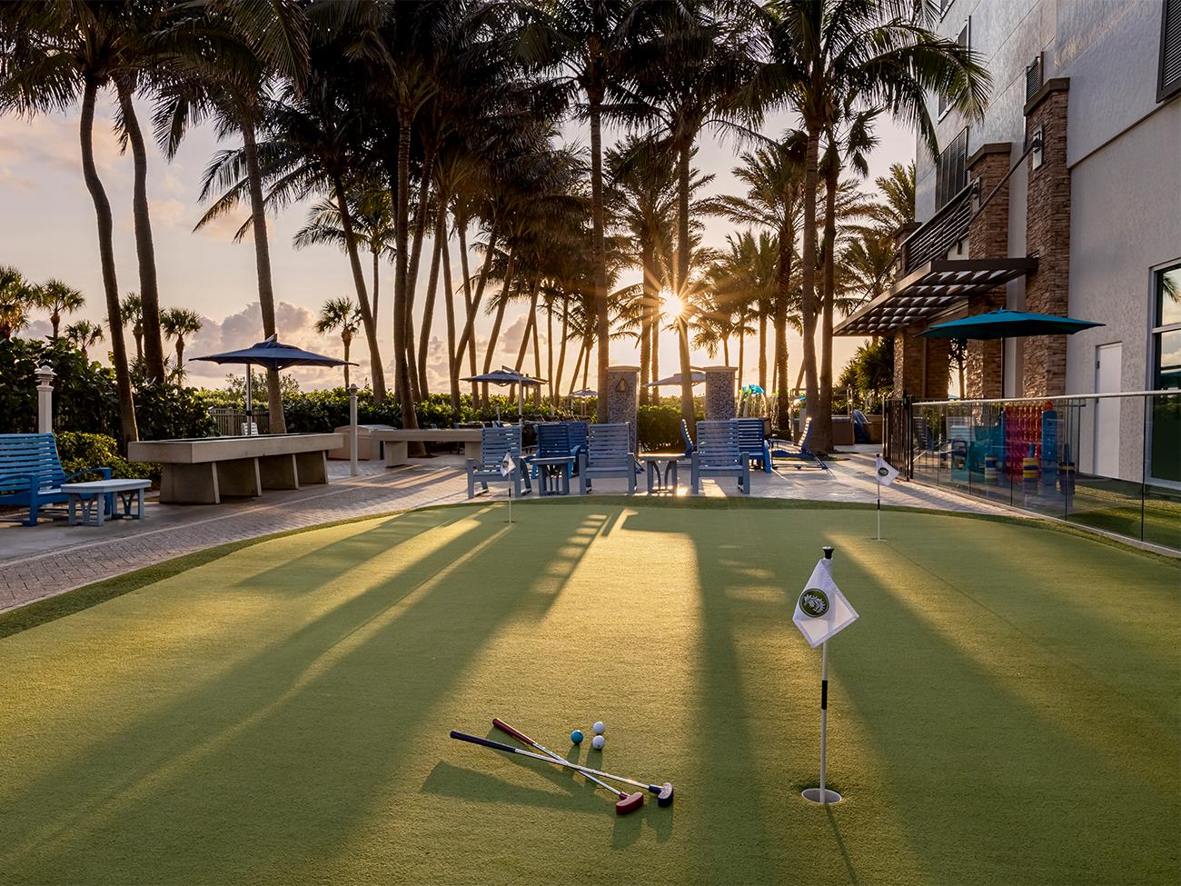 Family activities: Arts and crafts, poolside entertainment, ice cream socials, s’mores, movie night and more. Stop by The Backyard for miniature golf, table tennis, and billiards. Daily rentals available for beach umbrellas, cushions and cabanas.