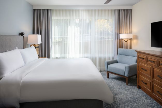 This inviting two-bedroom villa offers 1,200 sq. ft. (108 sqm) of comfortable living space, perfect for families or groups of up to eight guests. The villa features a master bedroom with a king bed and a second bedroom with two double beds, along with a sofa bed in the living area for additional sleeping space. A full kitchen, dining area, and separate living/sitting space provide a home-like atmosphere. Guests can unwind by the cozy fireplace or relax in the in-room whirlpool tub with spray jets, adding a touch of luxury to the stay.