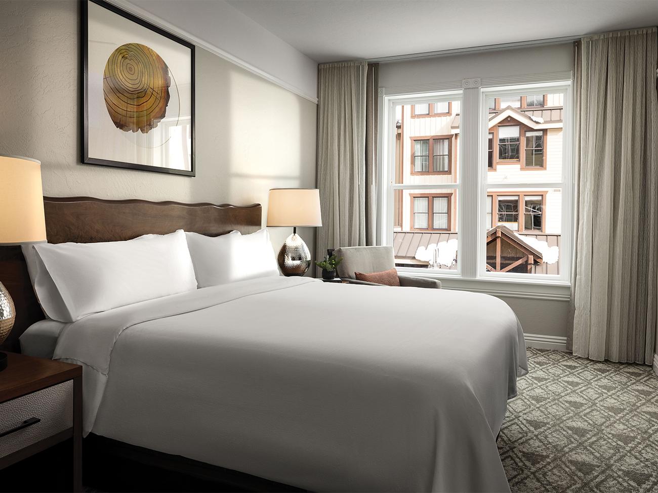 Your comfortable and beautifully appointed guestroom provides the perfect place to spread out, relax and recharge during your alpine vacation. Your beautiful guestroom is equipped with a kitchenette, high-speed internet, cable/satellite service on a large flat screen television.