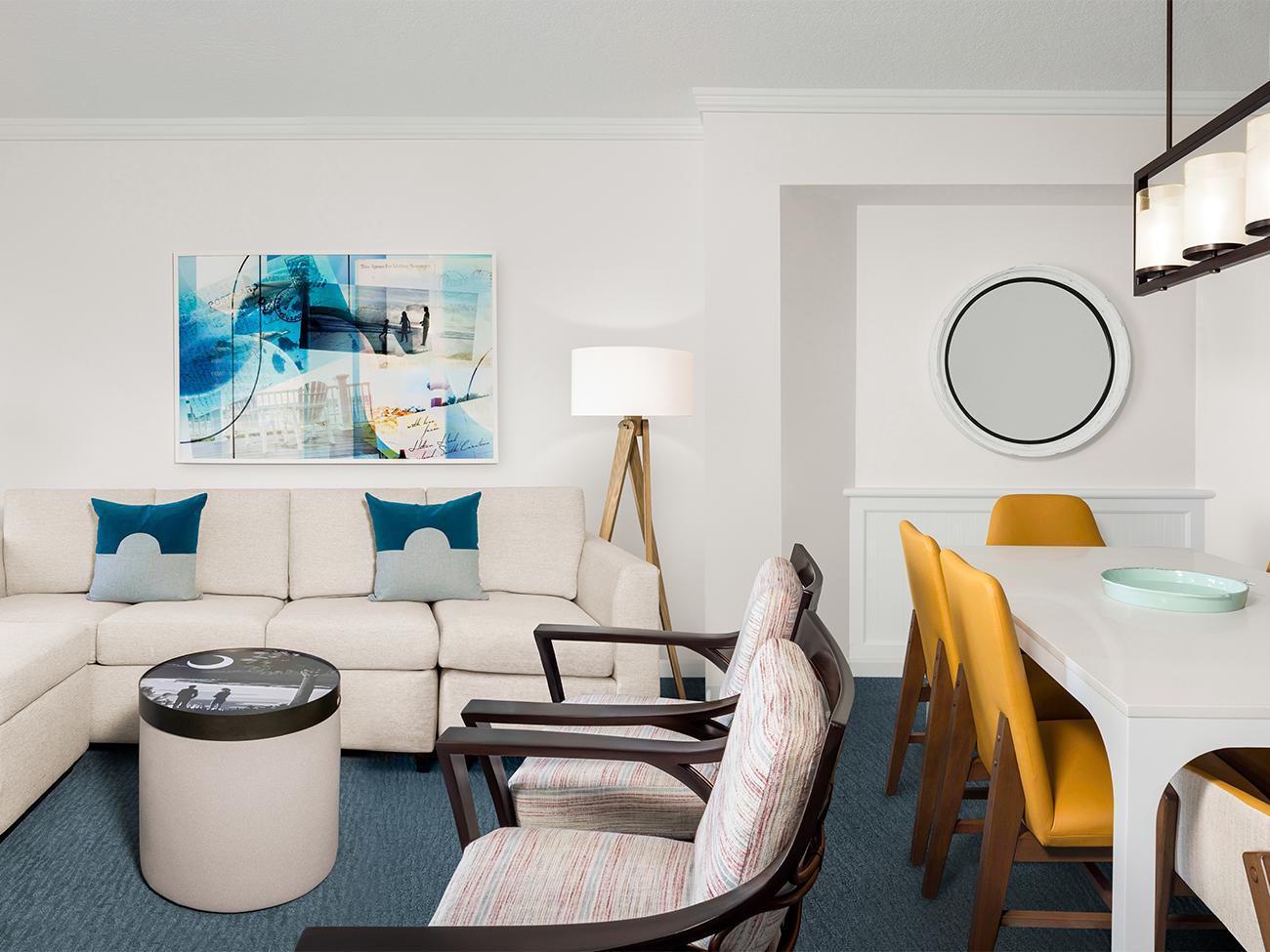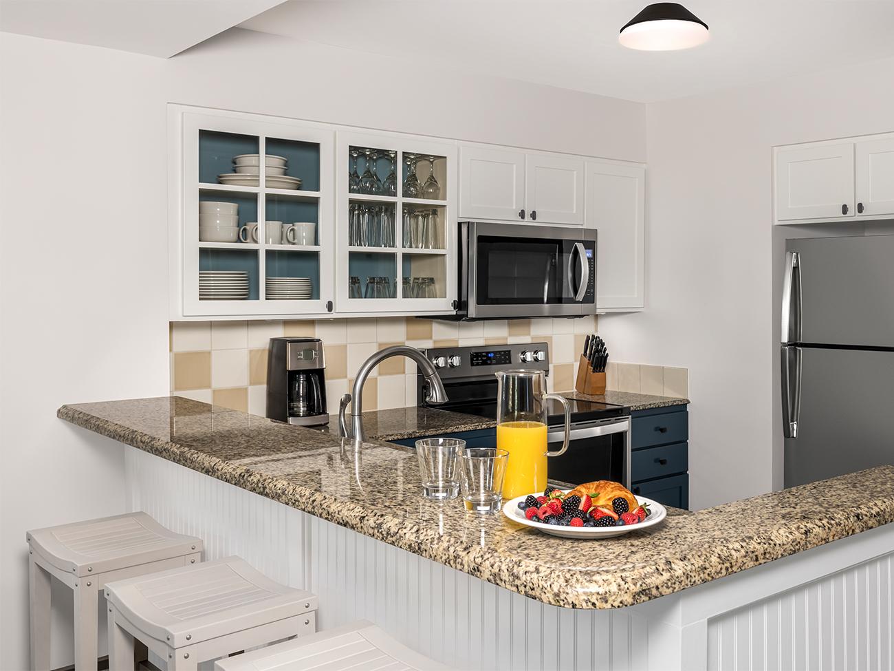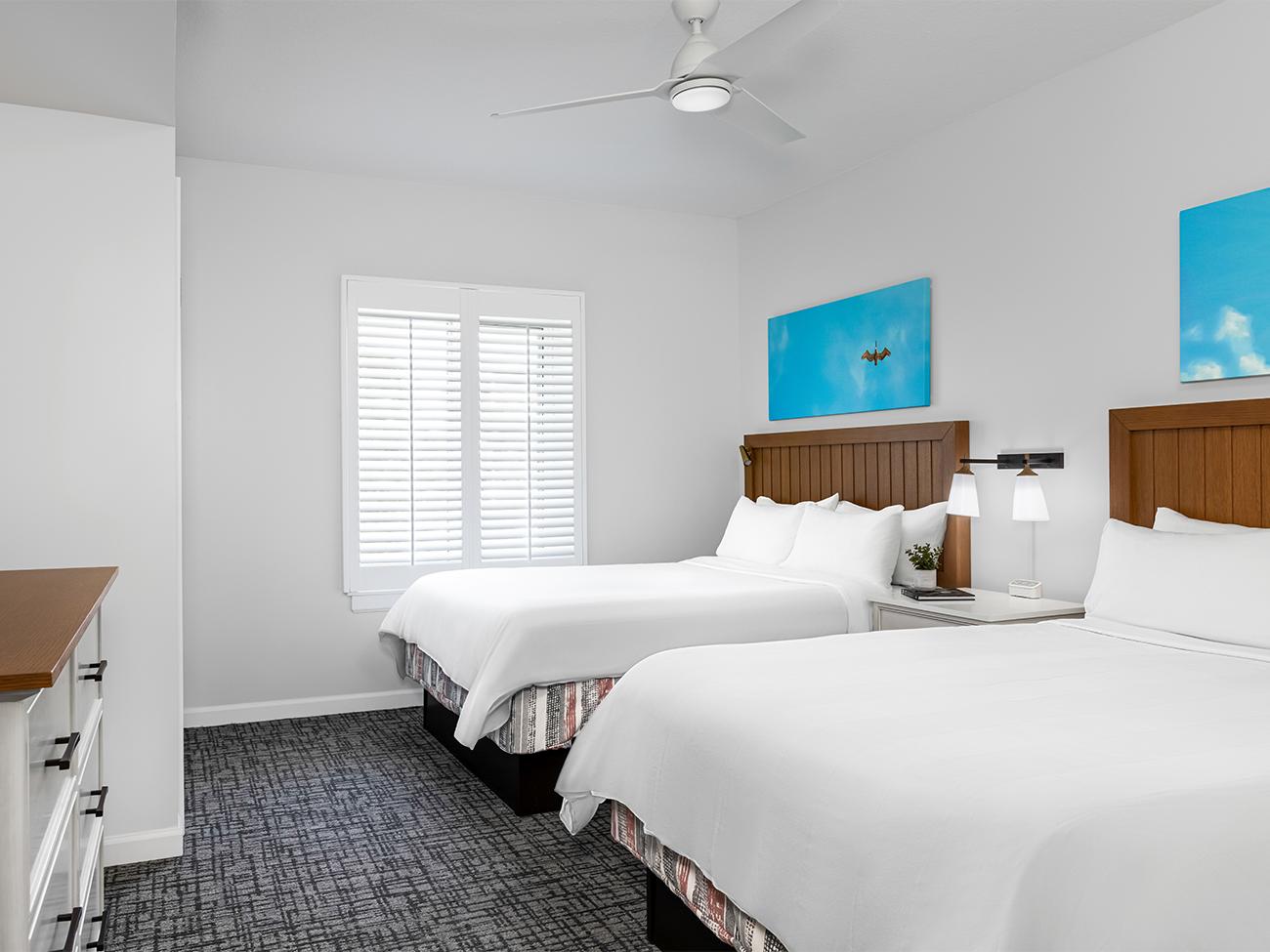 Your sizable villa is perfect for unwinding with separate bedrooms and baths, living and dining areas and private balcony. Your beautiful two-bedroom two-bath or three-bedroom three-bath villa is equipped with a full kitchen, washer/dryer, high-speed internet, and cable/satellite service on a large flat screen television with DVD player.
