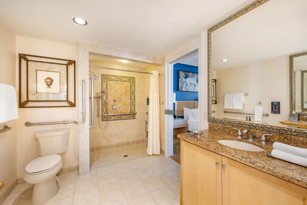 Enjoy a comfortable and convenient stay at Polo Towers in a well-appointed one-bedroom suite. This spacious suite features a private primary bedroom with a king bed and a full bathroom. The separate living and dining areas include a sleeper sofa, perfect for extra guests. The full-size kitchen is equipped with modern appliances including a refrigerator, stove, microwave, dishwasher, cooking utensils, and a coffee maker.