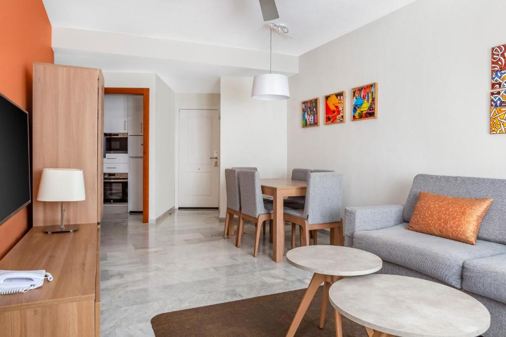 1-Bedroom Suites include a full-size bed in the bedroom, a sleeper sofa and TV in the living area and a private balcony. The kitchen is equipped with a stovetop, refrigerator, toaster, oven and electric kettle.
