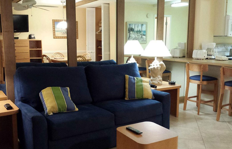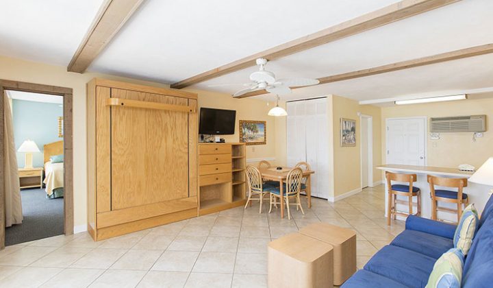 The one-bedroom & one-bathroom units at Sea Club IV feature a Queen-Sized bed, a Queen-Sized Murphy bed, and a Queen-Sized sleeper sofa in the living area. Enjoy cooking your favorite meals in the comfort of your condo with major appliances and essentials in the unit’s fully-equipped kitchen. Watch your favorite The Topsail Cabins are one-bedroom, one-bathroom units and sleep up to six (6) people. Each cabin features a queen–bed, a queen-sized Murphy Bed, and a queen-sized sleeper sofa in the living area. Guests can enjoy cooking in a fully-equipped kitchen, watch movies on the flat-panel televisions, and stay connected with free Wi-Fi. Our one-bedroom cabins include a private balcony overlooking the ocean.