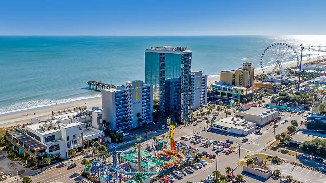 With a landmark location right on the sand in Myrtle Beach, SeaGlass Tower™ is the ideal focal point for a beach vacation. Nineteen stories of suites featuring floor-to-ceiling windows ensure stunning views of the ocean and Grand Strand, South Carolina’s famous 60-mile stretch of golden sand beaches. Reconnect with loved ones in this family-friendly place. The resort is conveniently located minutes from popular oceanfront attractions along the Myrtle Beach boardwalk promenade.