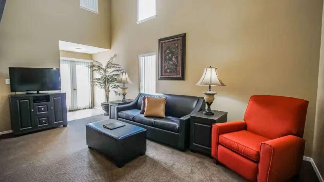 A roomy 929 sqft (86 sq. m ) one-bedroom townhome; replete with 1 queen bed and 1 sofa bed, plus a full kitchen, patio, free Wi-Fi and more.
