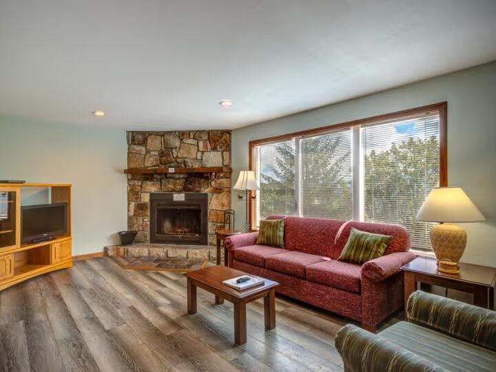 Inviting One-Bedroom Retreat with Fireplace & Balcony Views
