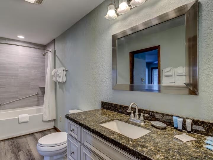 Full bathroom with a shower/tub combo, ideal for both quick refreshes and relaxing soaks.