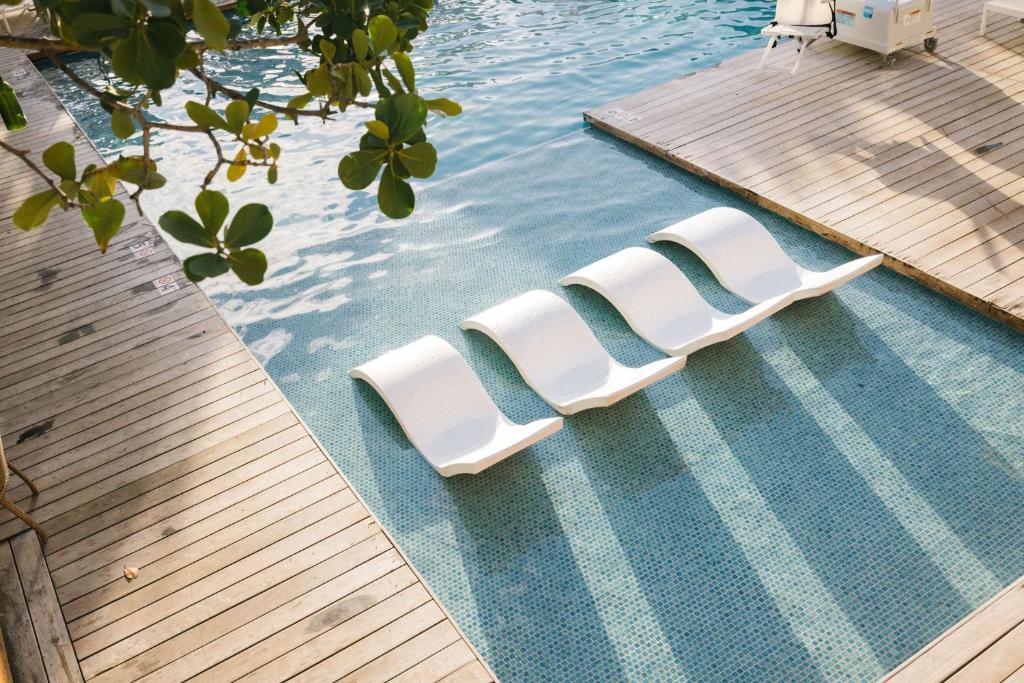 Each spacious 1-Bedroom Suite features a primary bedroom with one king-size bed and either a full sleeper sofa or a chaise lounge, plus water views and a private terrace. 1-Bedroom Ocean View Suites have an en-Suite primary bathroom and a second bathroom, while 1-Bedroom Marina Oceanfront Suites have one bathroom, a separate living area and two oversized private terraces.