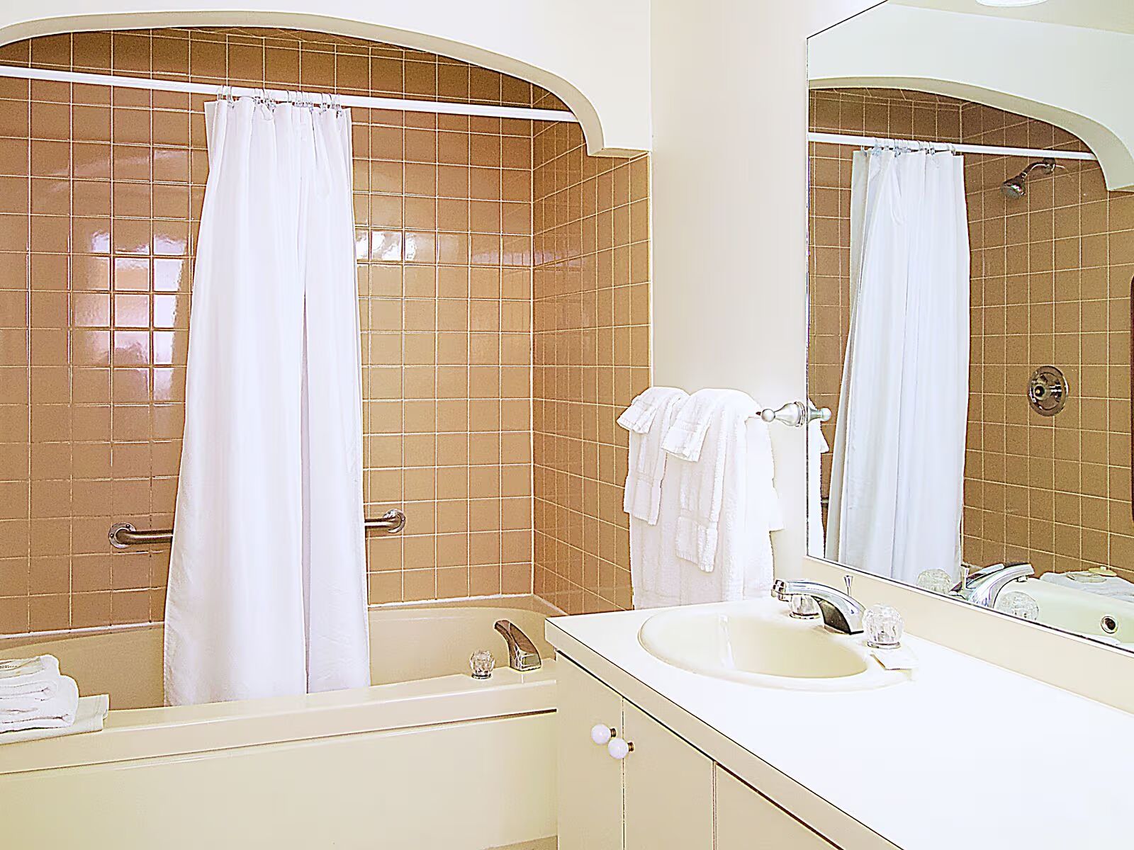 Full bathroom with shower/tub combination and fresh towels, designed for comfort and convenience.