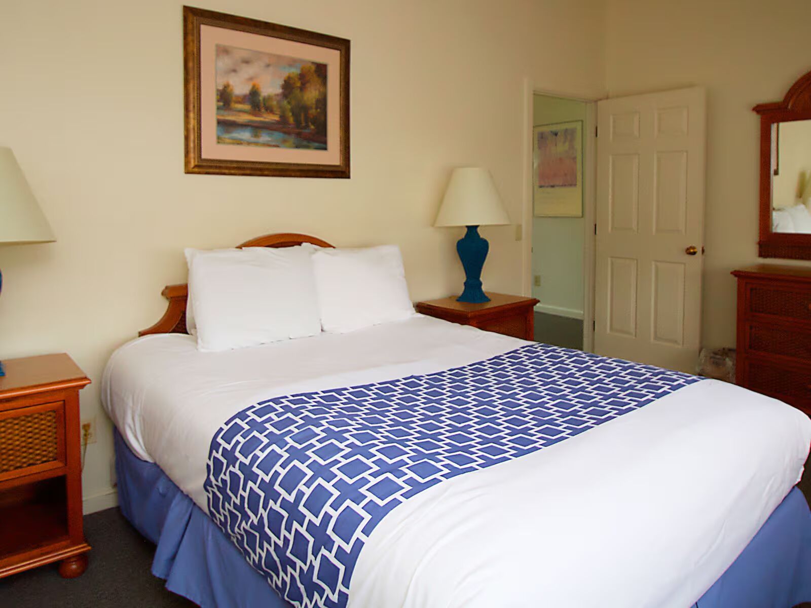 Cozy queen-sized bed with soft linens, perfect for a restful night after a day of exploring the Berkshires.