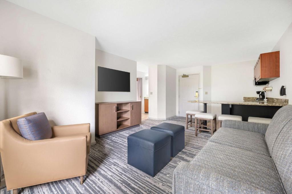 2-Bedroom Suites feature spacious bedrooms, one full bathroom, a living area and a partial kitchen with a mini-fridge, microwave and coffee maker.