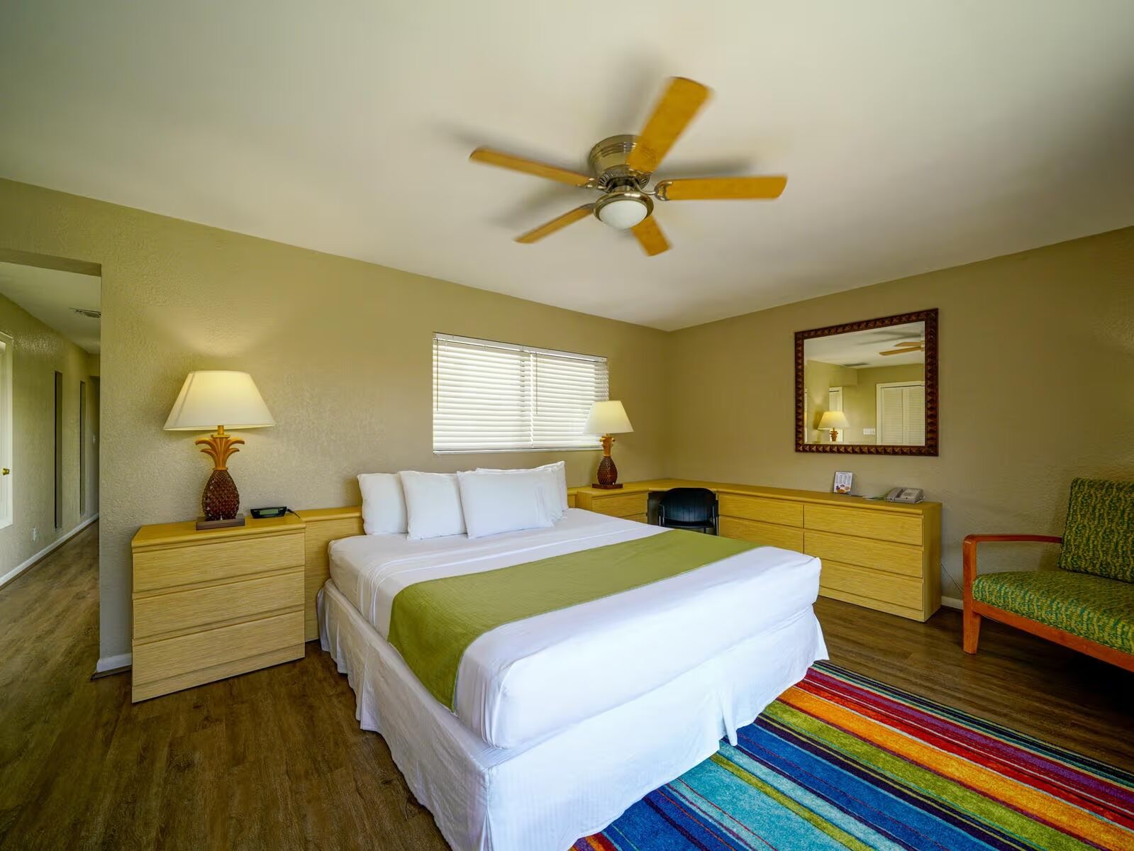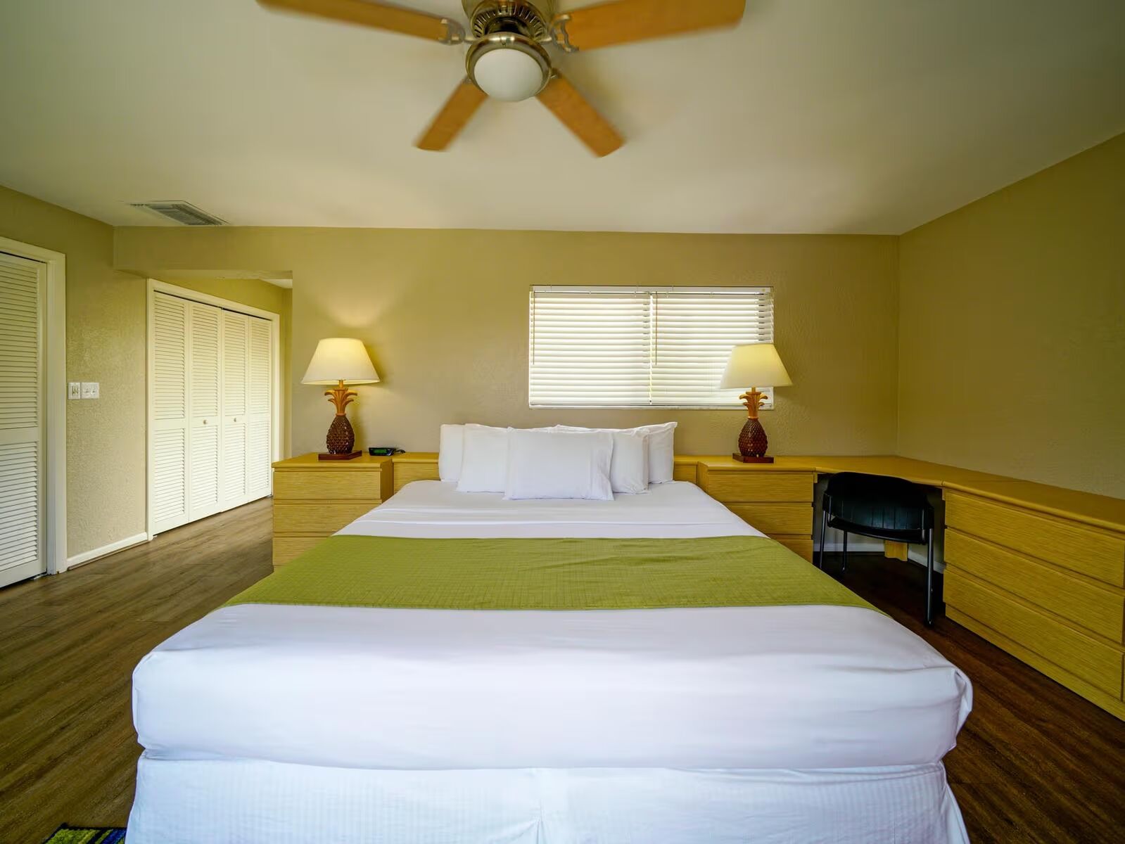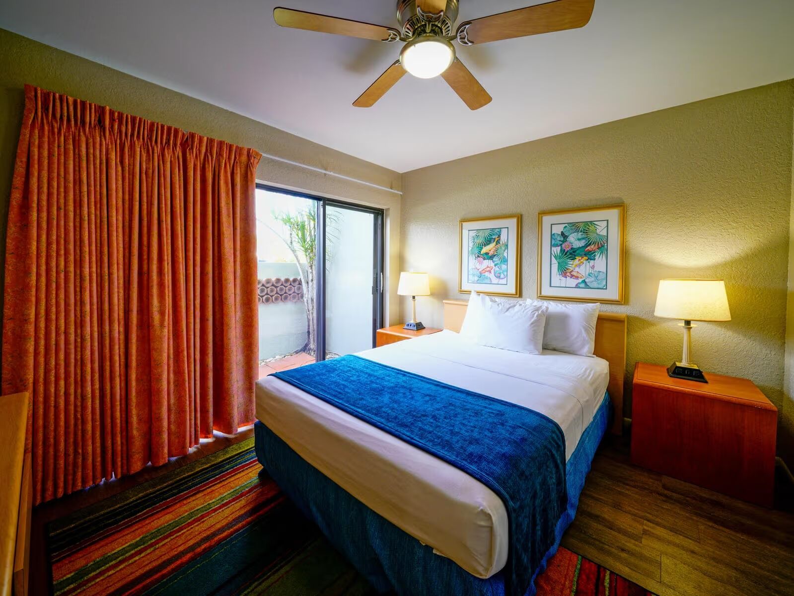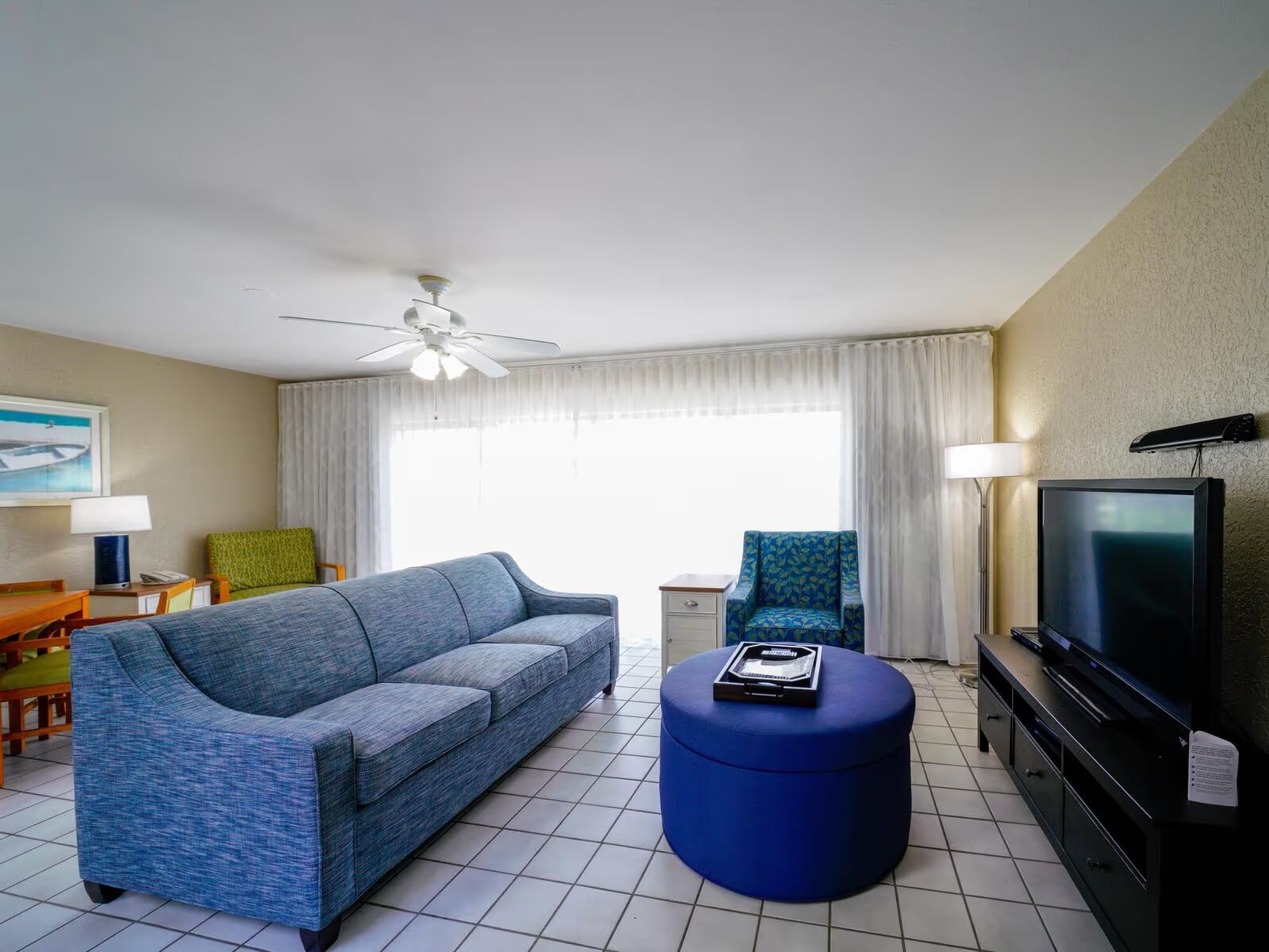 Our three-bedroom townhouses comfortably sleep eight (8) and include a king-sized bed in the master bedroom, two twin beds in the second bedroom, a queen bed in the third bedroom, and a queen-sized sleeper sofa in the family room. Guests will enjoy having a large family room, three bedrooms, three bathrooms, a spacious walk-in kitchen, a private atrium, and a private balcony. These townhomes feature plenty of space for large families, or even multiple families, to spread out and enjoy the comforts of home while on vacation.