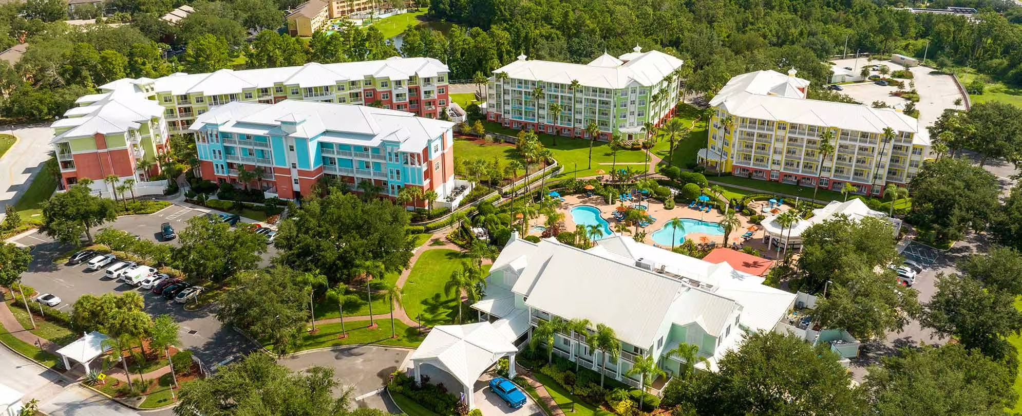 This resort lets you vacation in two places at once. It’s located on International Drive, so you’re minutes away from Orlando’s theme parks, water parks, dinner theaters, shopping centers, and golf courses. While you’re on property, though, you’ll swear you’re in Key West, with Old Florida charm inside and out.