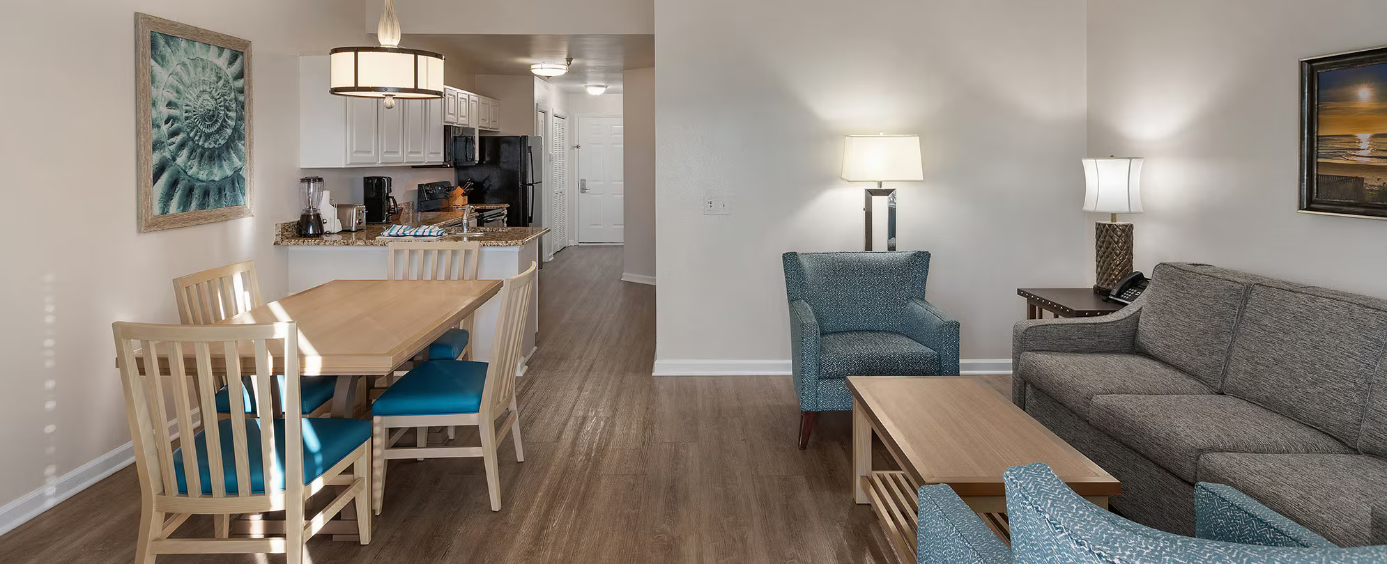 This expansive suite offers 1,916 sq. ft. of thoughtfully arranged living space and comfortably accommodates up to ten guests, making it ideal for families or larger groups. It features a full kitchen and four bathrooms, providing exceptional convenience and privacy. The sleeping configuration includes two double beds, two king beds, and a queen sleeper sofa, offering flexible and comfortable accommodation. A private balcony or patio enhances relaxation, while well-appointed in-unit amenities ensure a premium and enjoyable stay.