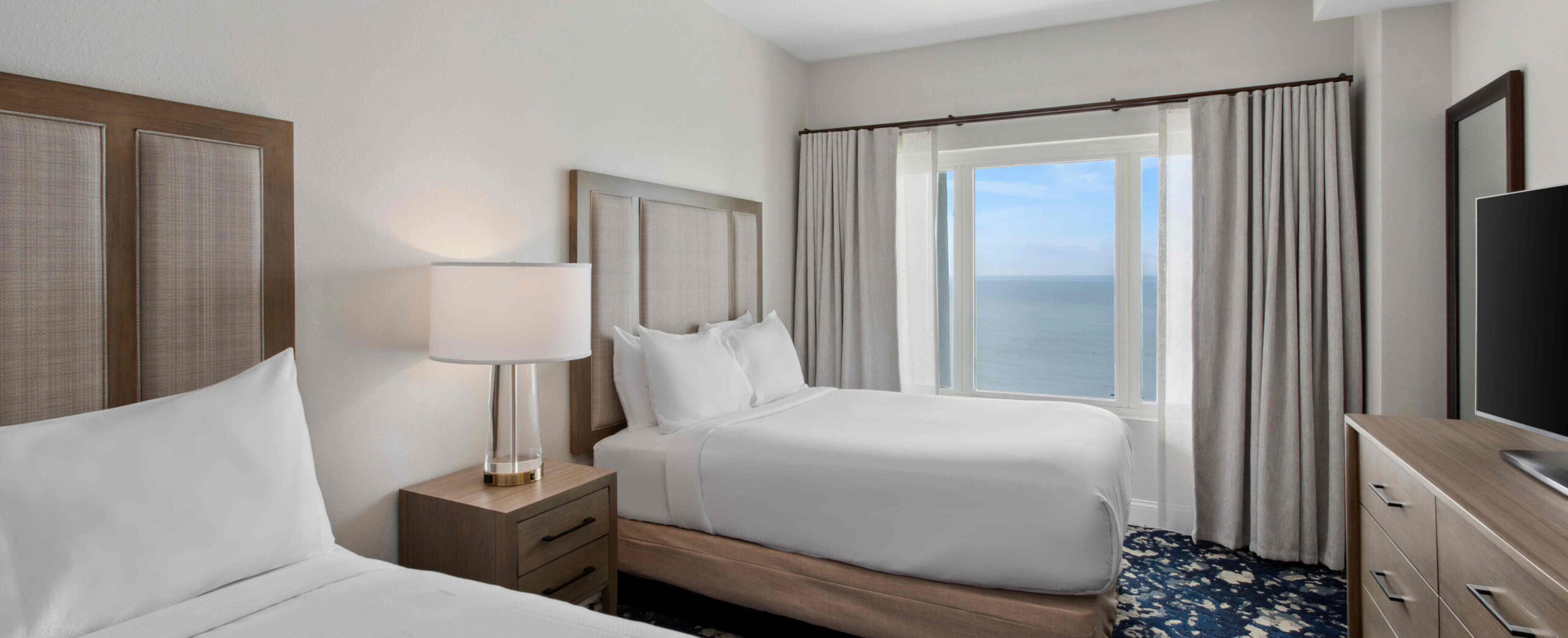 This expansive suite offers 1,889 sq. ft. of well-designed living space and comfortably accommodates up to twelve guests, making it ideal for large families or group stays. The suite features a full kitchen and three bathrooms, providing ample convenience and privacy. Sleeping arrangements include four double beds, two king beds, and a queen sleeper sofa, ensuring flexible and comfortable accommodation for all guests. A private balcony or patio enhances the stay, while modern in-unit amenities deliver a seamless and relaxing experience.